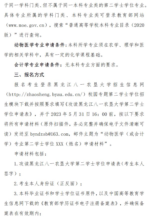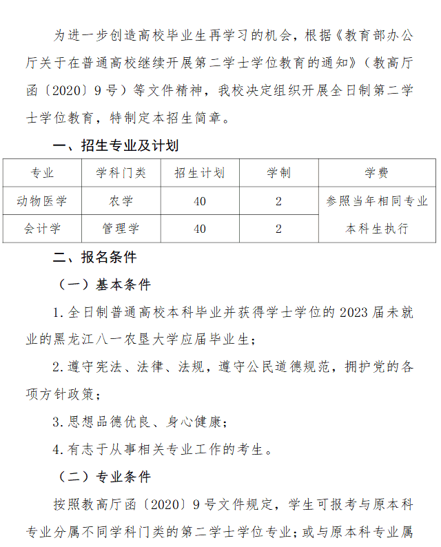 黑龙江八一农垦大学2023年第二学士学位招生简章